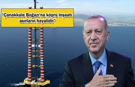 Türkiye Cumhurbaşkanı Recep Tayyip Erdoğan, Çanakkale Boğazı'na köprü inşaatının asırların hayali olduğundan bahsederek "Ülkemizde pek çok hayal gibi bunu da gerçeğe dönüştürmek hamdolsun bize nasip oldu." diye konuştu.