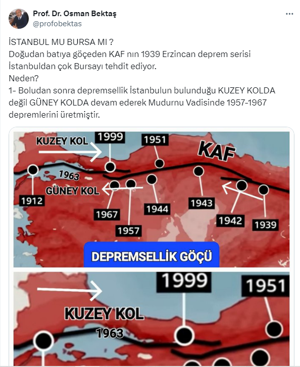 Prof. Dr. Osman Bektaş doğudan batıya göç eden KAF'nın 1939 Erzincan deprem serisinin İstanbul'u mu yoksa Bursa'yı mı tehdit edeceğini açıkladı.
