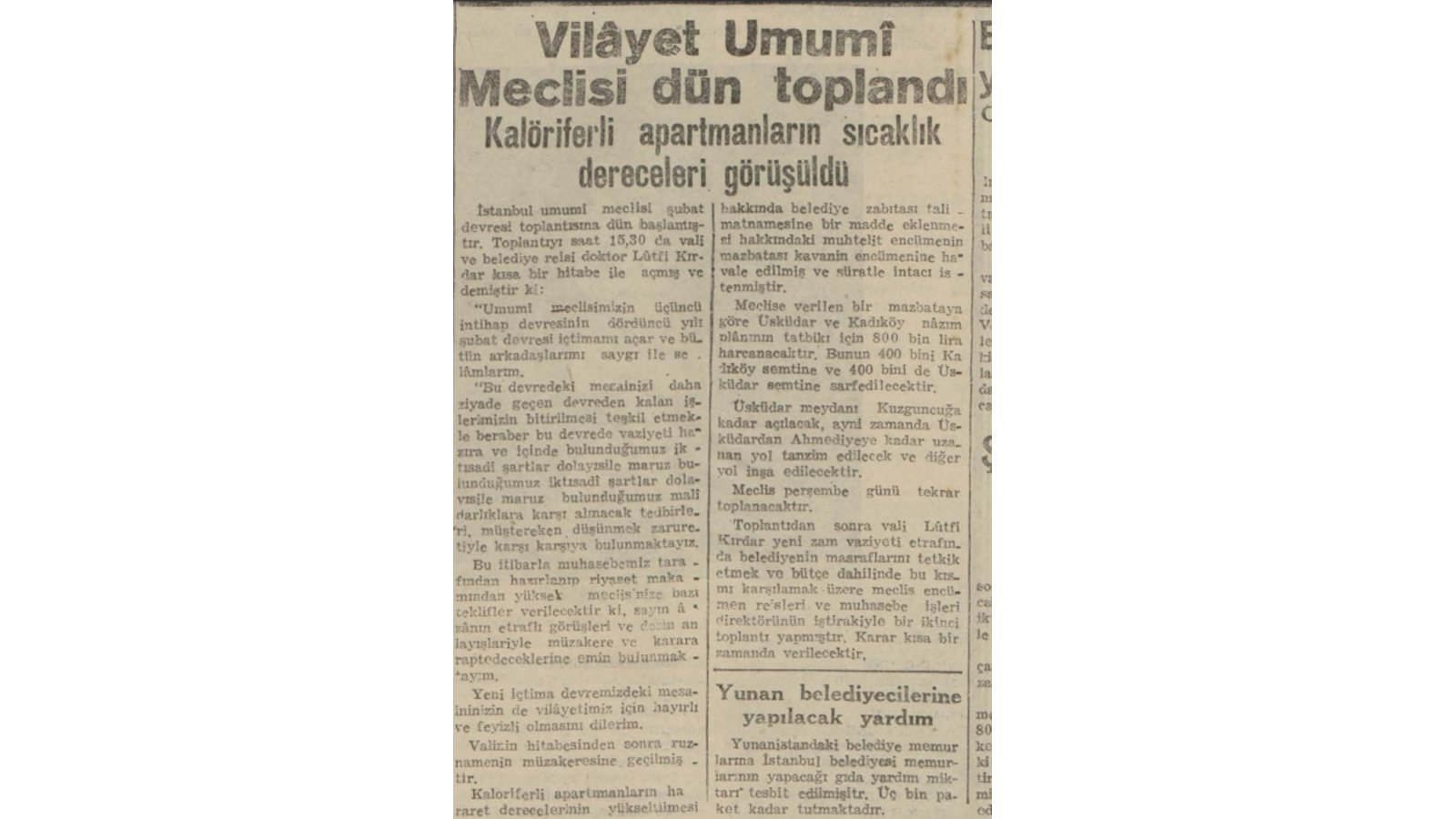Söz konusu haber 3 Şubat 1942 yılında Vakit Gazetesi'nde '' Kaloriferli apartmanların sıcaklık dereceleri görüşüldü'' başlığı ile kaleme alınmış. İşte o haber...