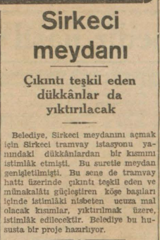 1942 yılından Sirkeci'de tramvay yolu üzerinde çıkıntı teşkil eden dükkanların yıkılmasına karar verilmiş.