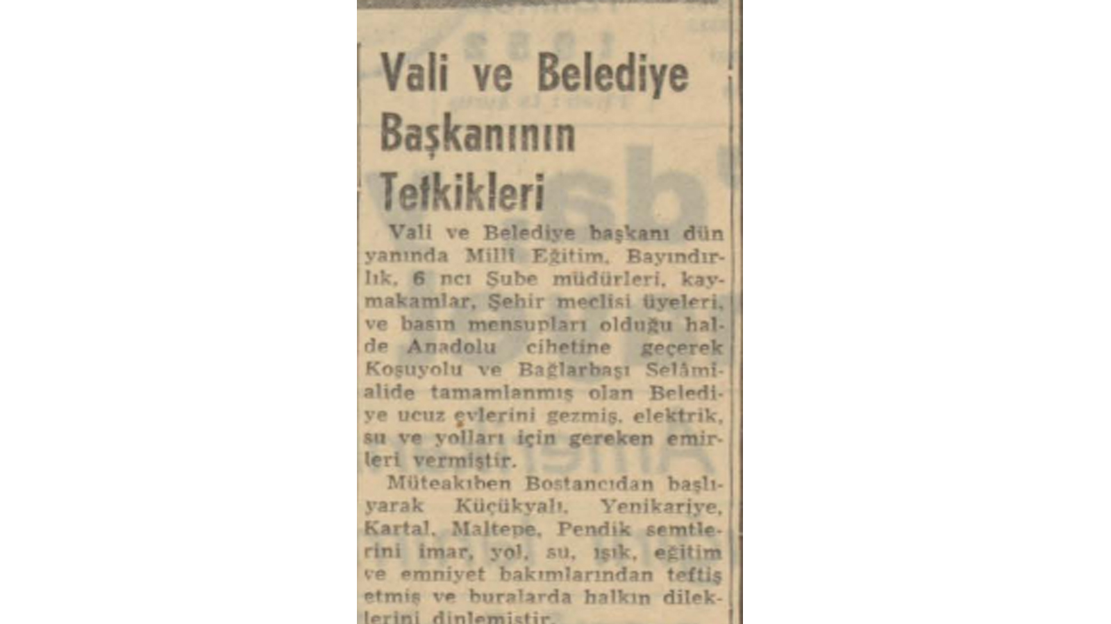 Söz konusu haber 3 Temmuz 1952'de Vatan Gazetesi'nde ''Vali ve Belediye Başkanının tetkikleri'' başlığı ile kaleme alınmış...
