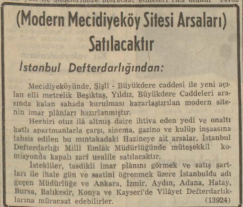 1957 yılında Modern Mecidiyeköy Sitesi için Büyükdere Caddesi'ndeki arsalar satılacakmış!