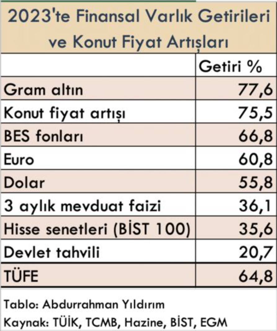 - Söz konusu bu getiri oranı ile beraber konut yatırımı 2023 yılında ülkemizde tüm ana finansal yatırım araçlarını da geçti.