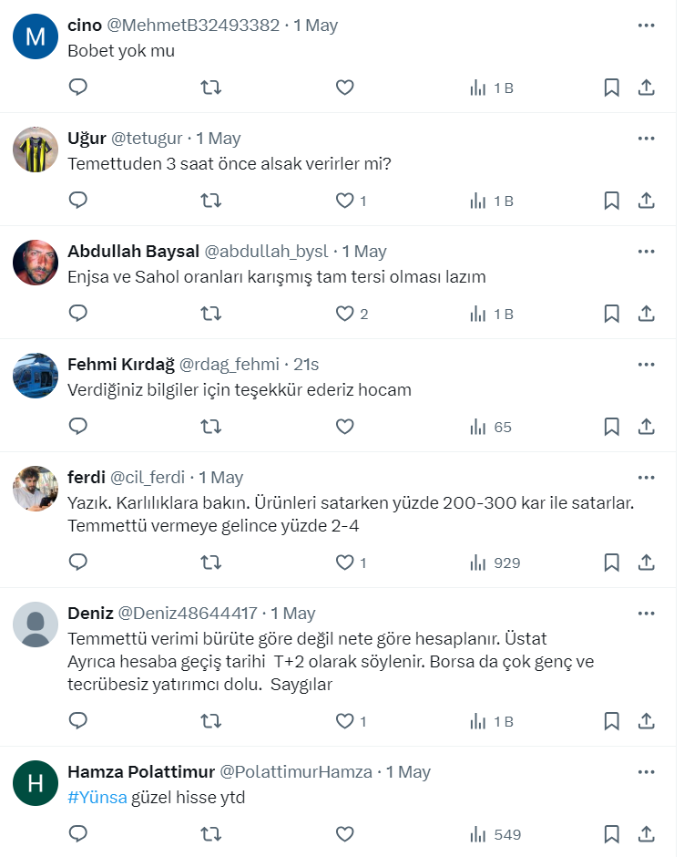 - Enka İnşaat #ENKAI ₺1,14 (Verim: 3.43%)
