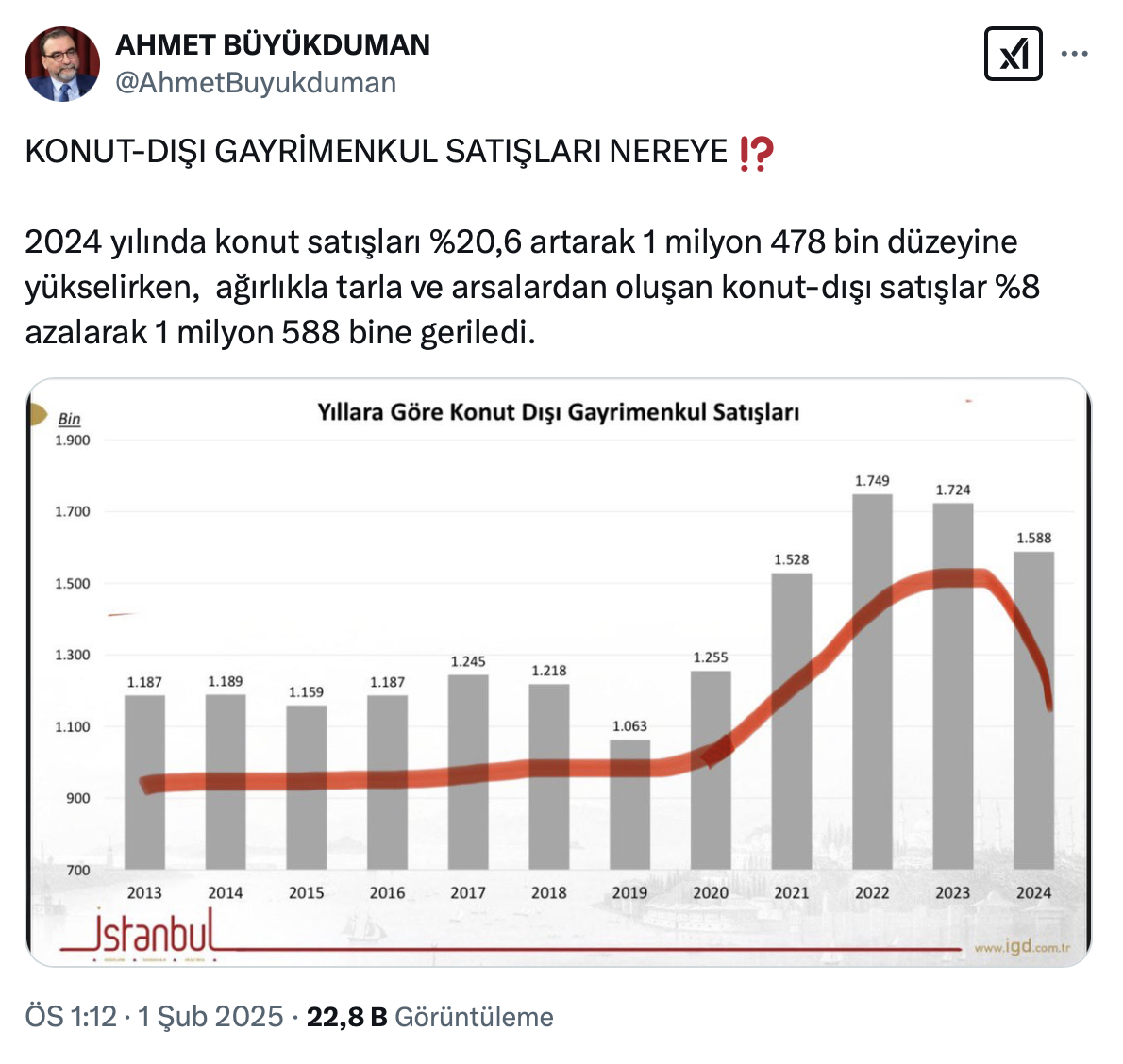 Gayrimenkul Değerleme Uzmanı Dr. Ahmet Büyükduman'ın paylaşımı şu şekilde: