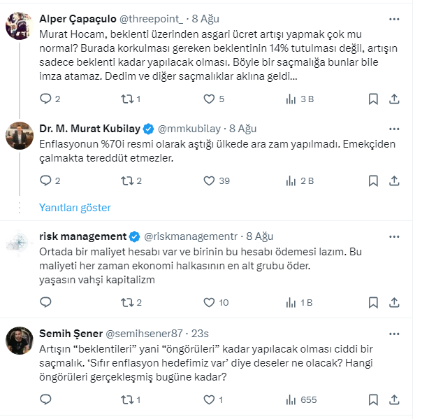 Dr. M. Murat Kubilay asgari ücretle ilgili çarpıcı açıklamalarda bulundu. Kubilay, amacın yeni yılda asgari ücreti sadece yüzde 14 artırmak olduğunu ve piyasa beklentilerinin yüzde 25 olmasına rağmen hedefin sabit tutulduğunu söyledi. Kubilay sosyal medya hesabından yaptığı paylaşıma onlarca yorum geldi. İşte o paylaşım ve gelen yorumlar...