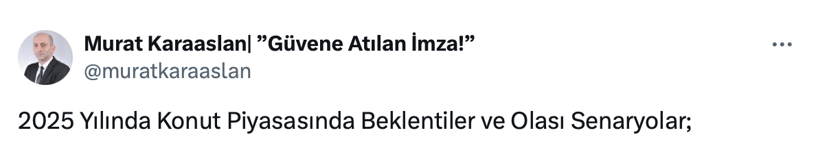 Gayrimenkul Danışmanı Murat Karaaslan'ın paylaşımı şu şekilde: