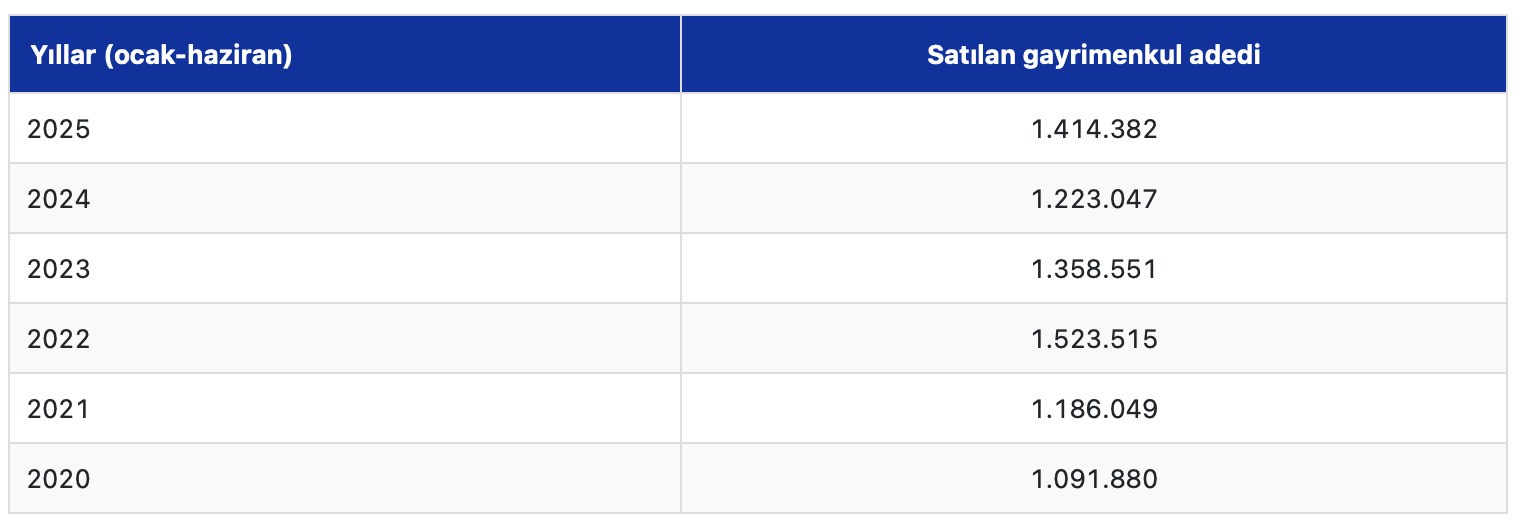 2025’in ilk yarısında satılan gayrimenkul sayısı 1,4 milyonu aştı!