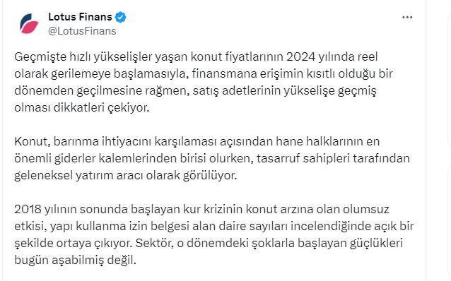 Geçmişte hızlı yükselişler yaşayan konut fiyatlarının 2024 yılında reel olarak gerilemeye başlamasıyla, finansmana erişimin kısıtlı olduğu bir dönemden geçilmesine rağmen, satış adetlerinin yükselişe geçmiş olması dikkatleri çekiyor.