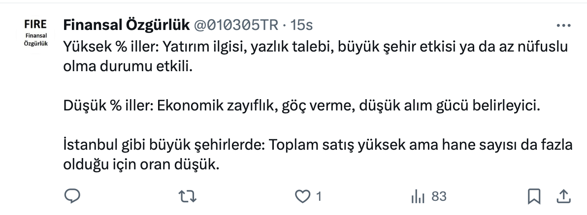 Konut satışları 2025 yılına hızlı bir başlangıç yaparken, Şehir Plancısı ve Gayrimenkul Değerleme Uzmanı Celal Erdoğdu da resmi X hesabı https://twitter.com/CelalErdogdu üzerinden bir paylaşım yaptı.