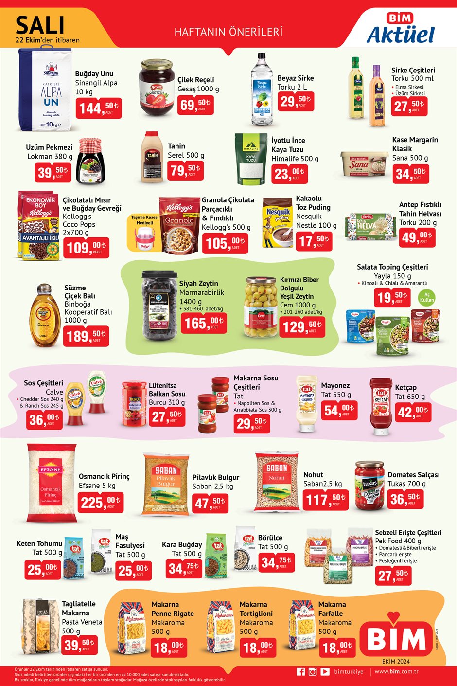 BİM 22 Ekim 2024 haftanın önerileri kataloğu yayınlandı. BİM'de bu hafta 22 Ekim ile 29 Ekim 2024 tarihleri arasında geçerli olacak kampanyada yer alacak fırsat ürünleri belli oldu. 22 Ekim 2024 Salı günü BİM'de neler var? Salı günü BİM'e neler gelecek? 22 Ekim 2024 BİM aktüel ürünler listesi...