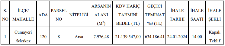 Arsaların satış ihaleleri 24 Ocak 2024 tarihinde yapılacak. İşte o ihale ilanları...
