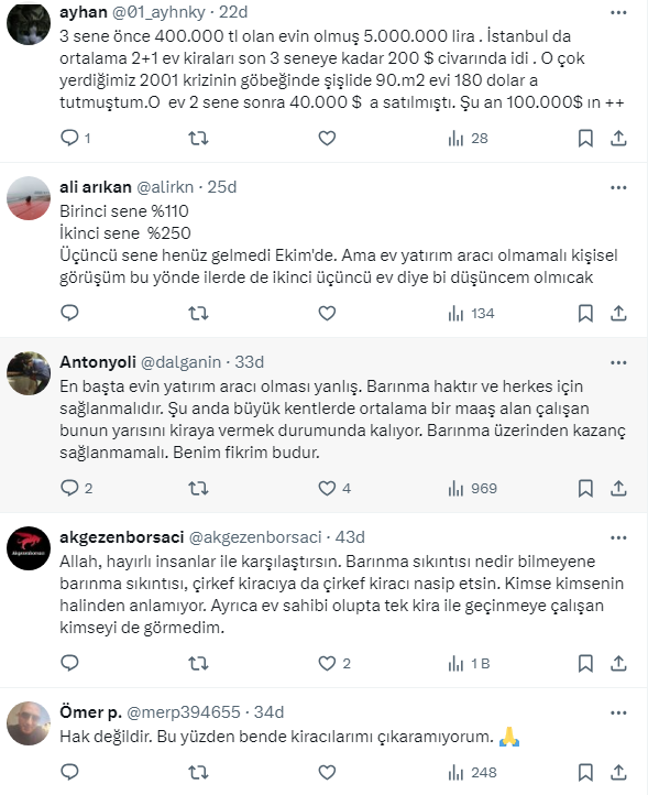 Mevcut enflasyon ve evin değerine bakarsan 7 katına çıkmış ama kira 3 yılda 3 yılda % 56 artmış..