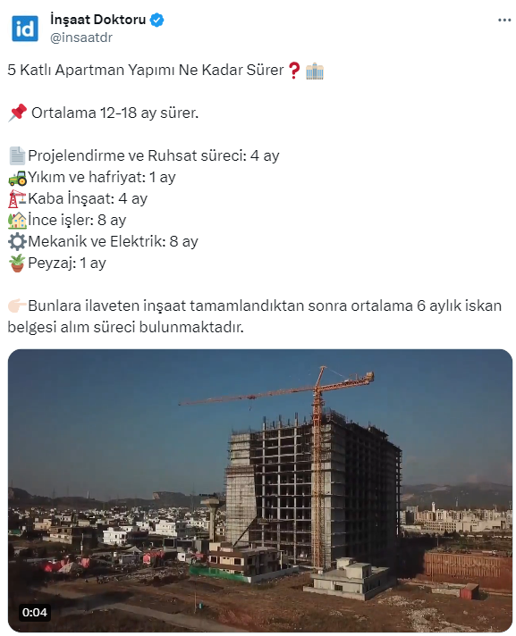 İşte İnşaat doktorunun sosyal medya hesabı X'ten yaptığı 'beş katlı bir binanın yapım süresi' paylaşımı ve takipçilerden gelen yorumlar...