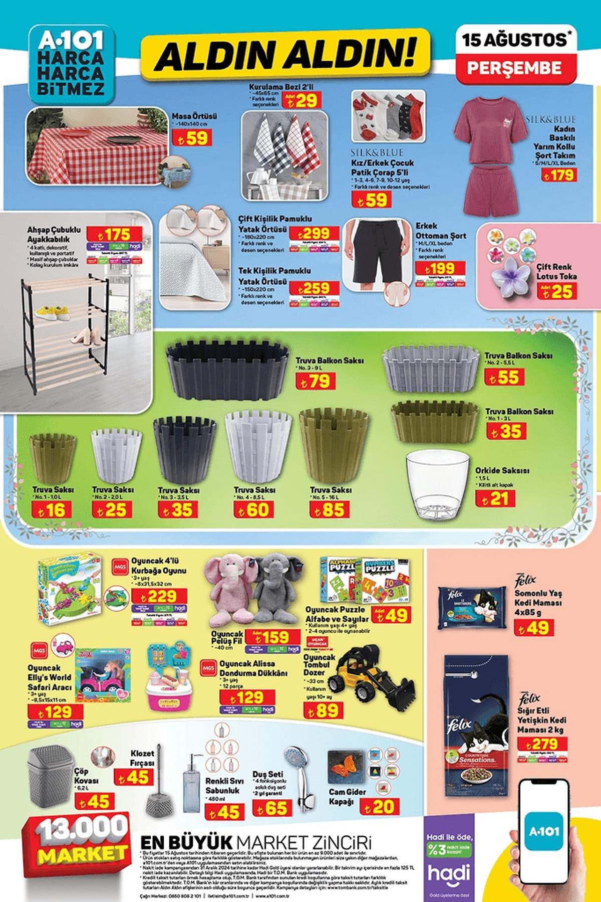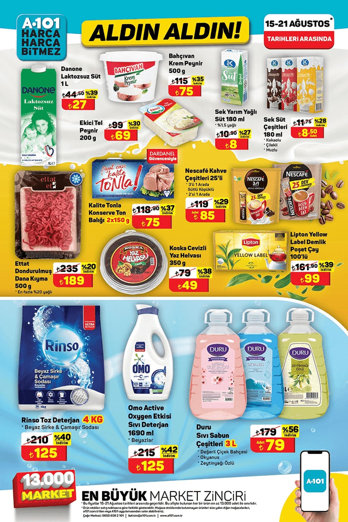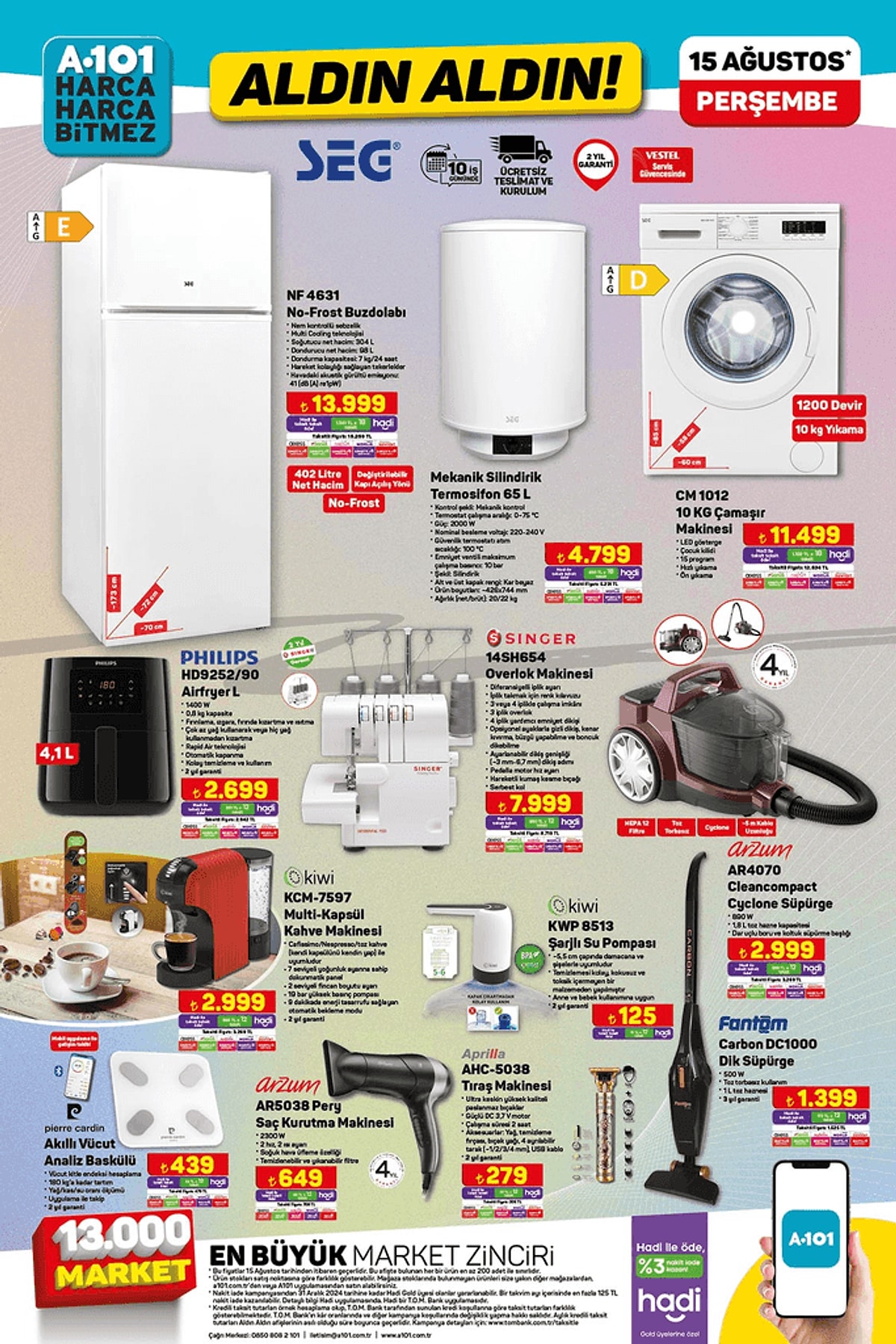 A101 15 Ağustos 2024 kataloğunu internet üzerinden paylaştı. A101'e bu hafta birbirinden çeşitli ürünler geliyor. Türkiye'nin en büyük market zincirlerinden A101 aktüel ürünler kataloğunu paylaştı.