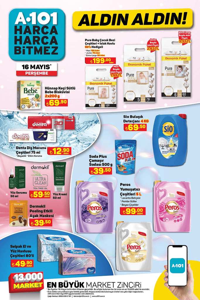 A101’in 16-23 Mayıs 2024 tarihleri arasında gıdadan temizlik ürünlerine kadar pek çok üründe dev indirimler yaptığı belirtilirken, indirimli ürünler de tek tek açıklandı.