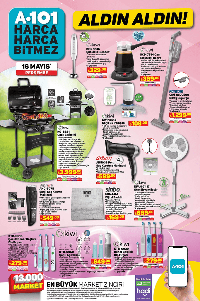A101, merakla beklenen 16 Mayıs-23 Mayıs 2024 yeni aktüel kataloğunu yayımladı. A101'de bu hafta portatif ocak, termos, kettle, dikey süpürge, cam cezve indirimde...