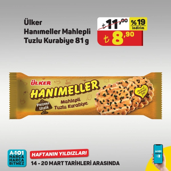 Ülker Hanımeller Mahlepli Tuzlu Kurabiye 8.90 Türk Lirası.