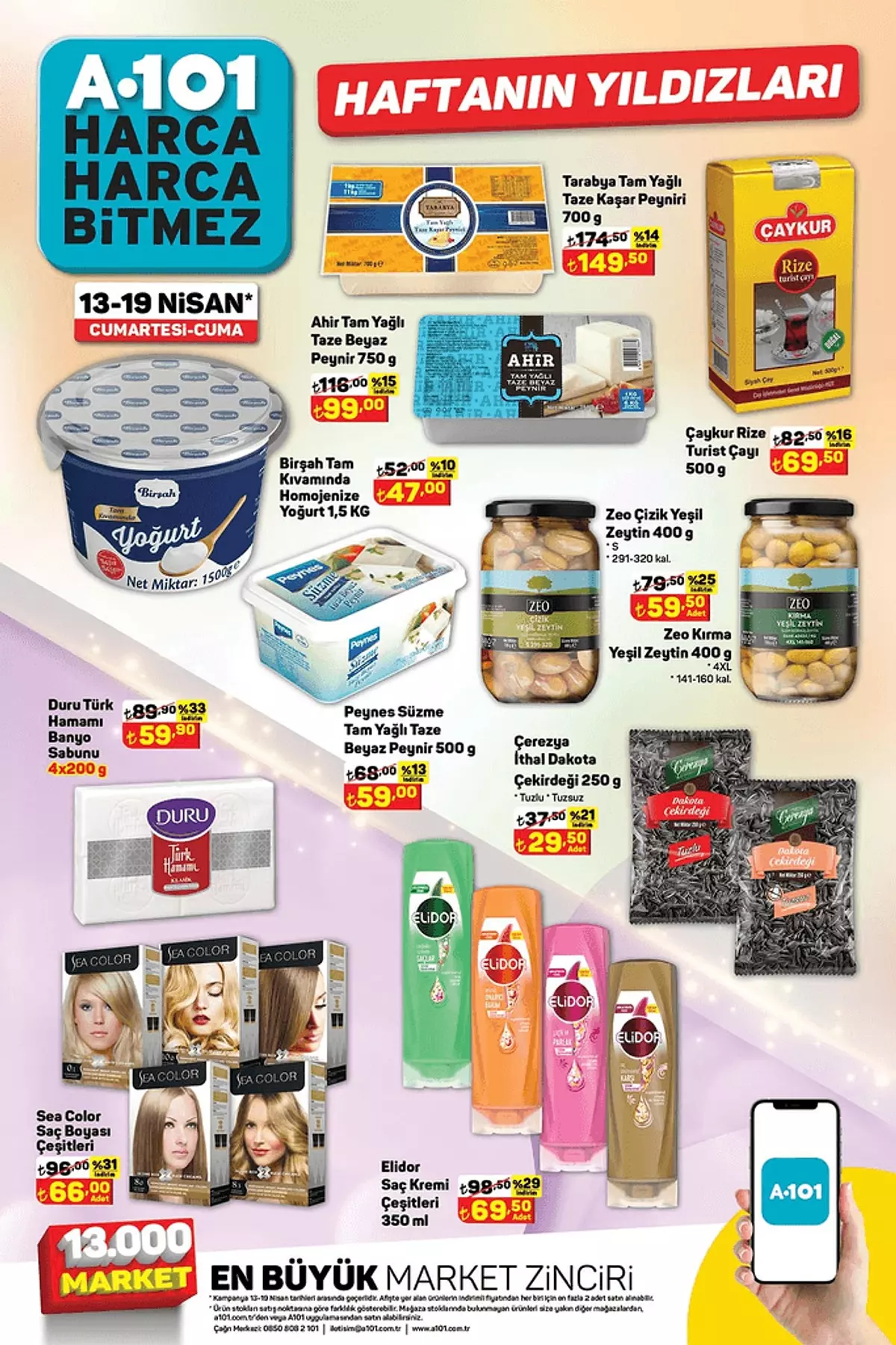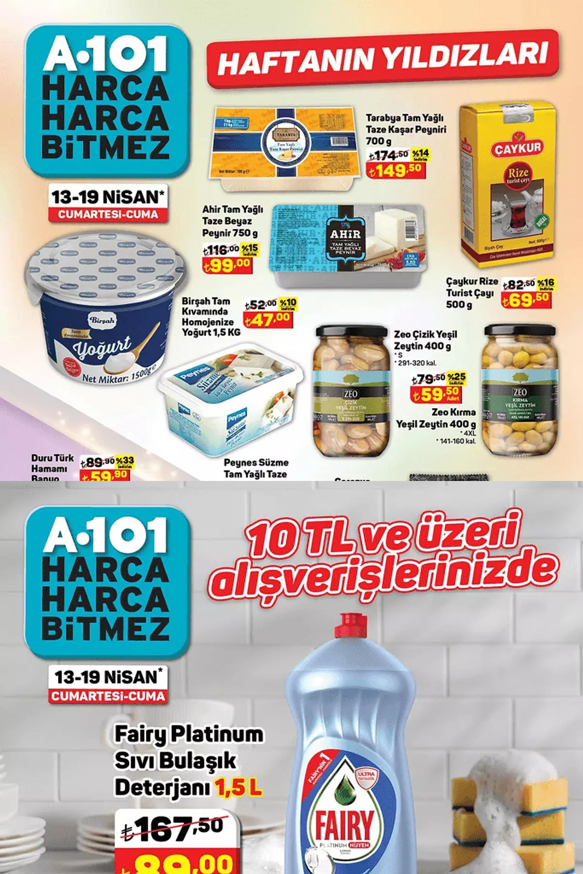 Perakende devi A101’in tüketiciler tarafından merakla beklenen 18-19 Nisan aktüel kataloğu resmi internet sitesi üzerinden yayımlandı. Bu kapsamda, A101’de yoğurttan siyah çaya, sütten beyaz peynire, zeytinden banyo sabununa kadar pek çok ürüne indirim geldi. Peki, A101’de yeni haftada hangi ürünler indirime girdi, hangi ürünün fiyatı ne kadar?