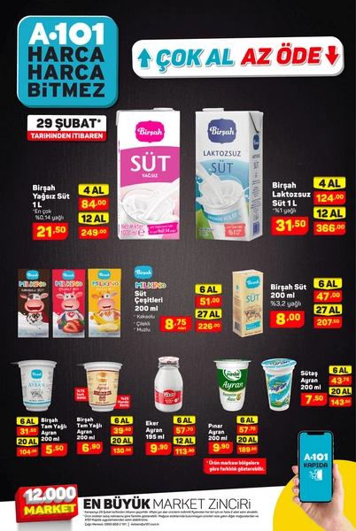 - Birşah Yağsız Süt 21.50 Türk Lirası.