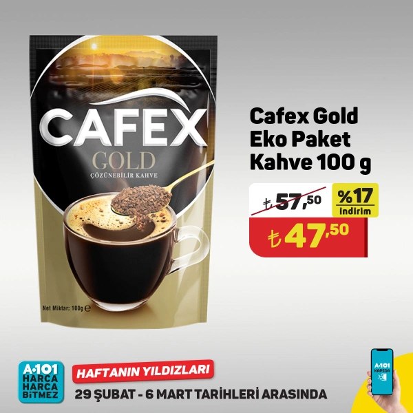 - 100 g Cafex Gold Eko Paket Kahve 47.50 Türk Lirası.