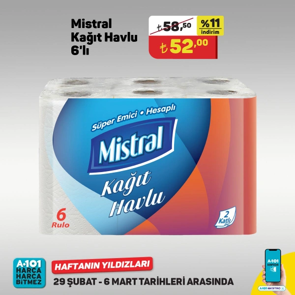 - 6'lı Mistral Kağıt Havlu 52 Türk Lirası.