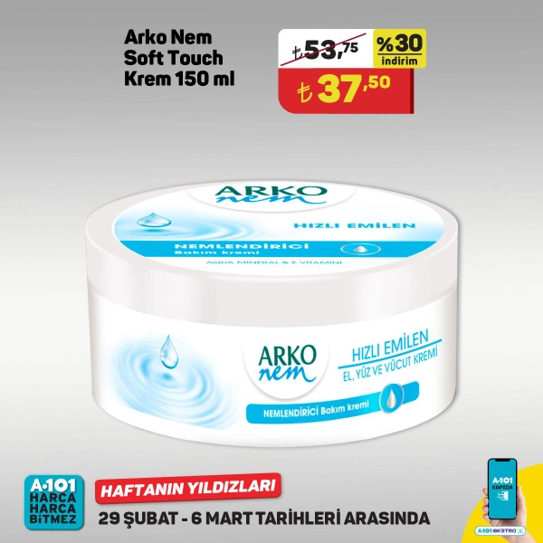 - Arko Nem Soft Touch Krem 37.50 Türk Lirası.