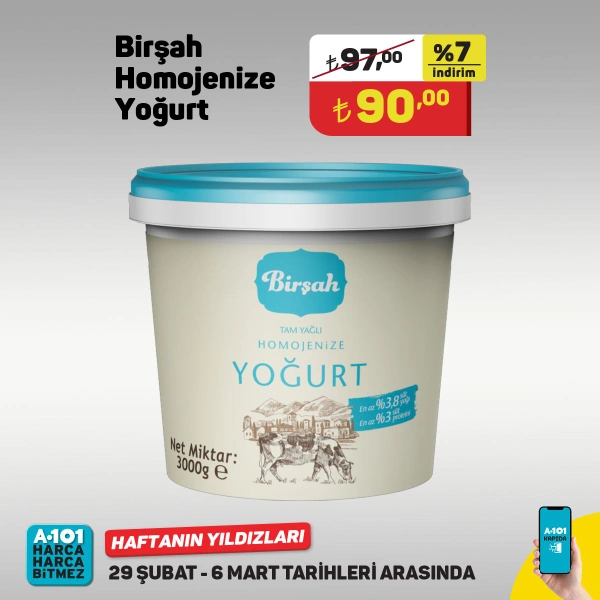 - 3 kg Birşah Homojenize Yoğurt 90 Türk Lirası.