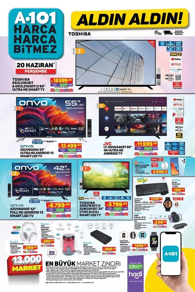 A101 20 Haziran 2024 aktüel ürünler kataloğunu yayımladı! 20 Haziran'da A101'e televizyon, cep telefonu ve ATV geliyor!