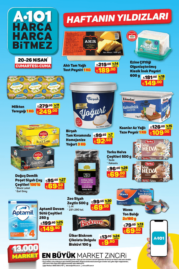 A101 20 Nisan-26 Nisan Aktüel Kataloğu! A101’de peynir, zeytin, helva, çay ve deterjanda indirim var!