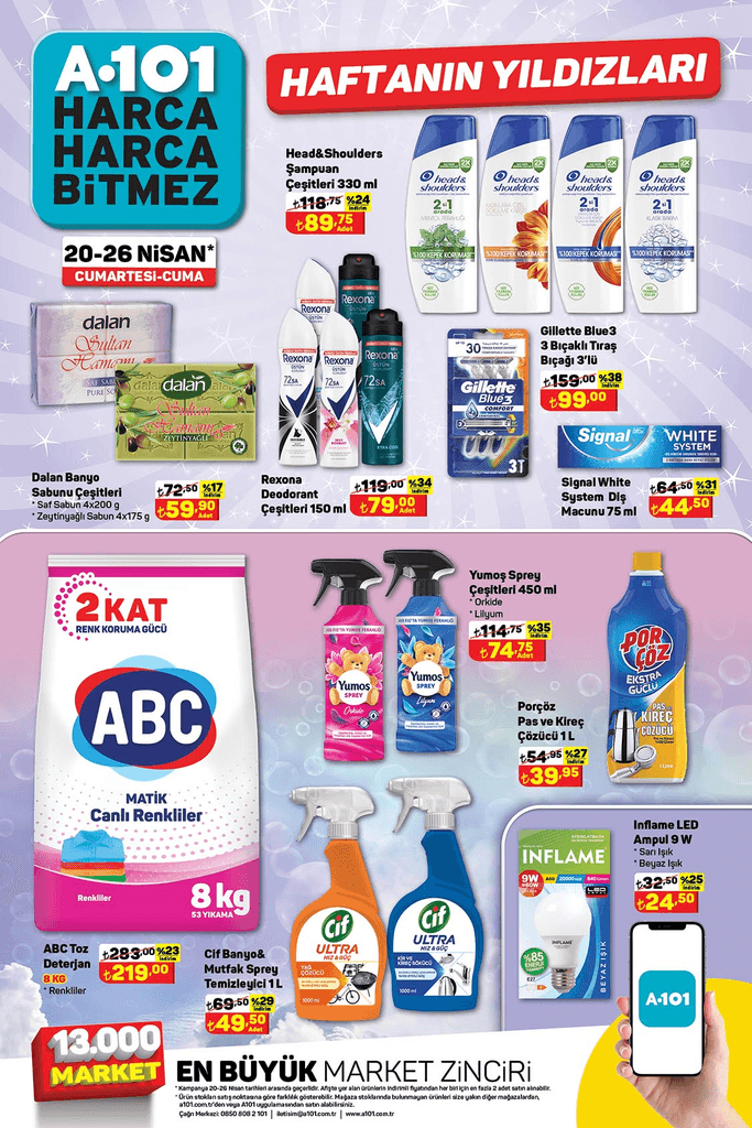 Ülkemizin en büyük zincir marketleri arasında yer alan perakende devi A101, 26 Nisan 2024 tarihine kadar geçerli indirimlerini resmi internet sitesi üzerinden yayımladı.