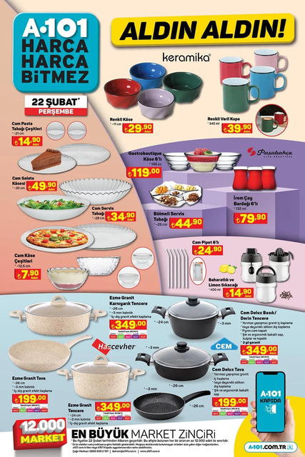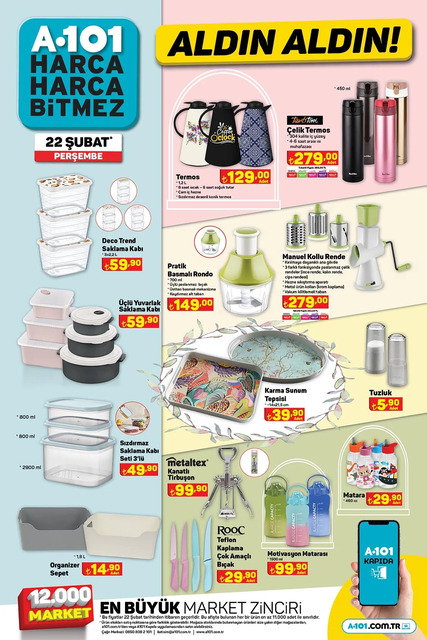 A101 22 Şubat 2024 Perşbe aktüel ürünler kataloğundaki ürünler ve fiyatları.