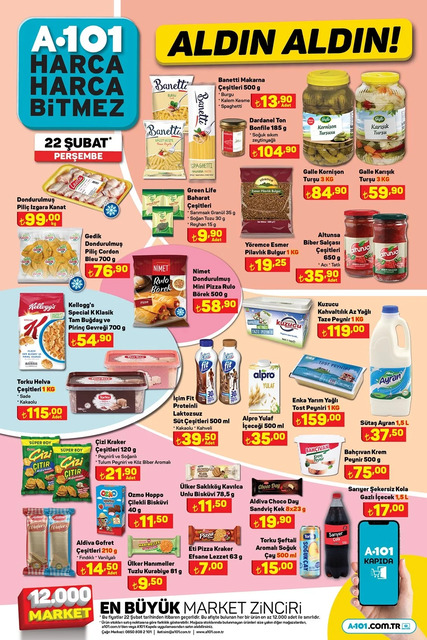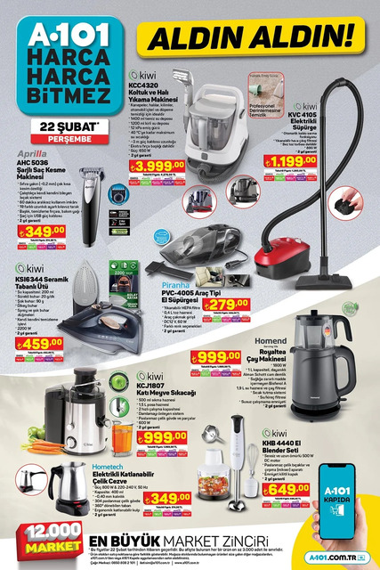 Türkiye'nin en büyük market zincirlerinden biri olan A101'de 22 Şubat'ta birçok üründe fırsatlar sunuyor. Beyaz eşya, elektronik ürünler, seçili gıda ve aksesuarlarda indirimler yapan A101'de yer alan ürünler neler?