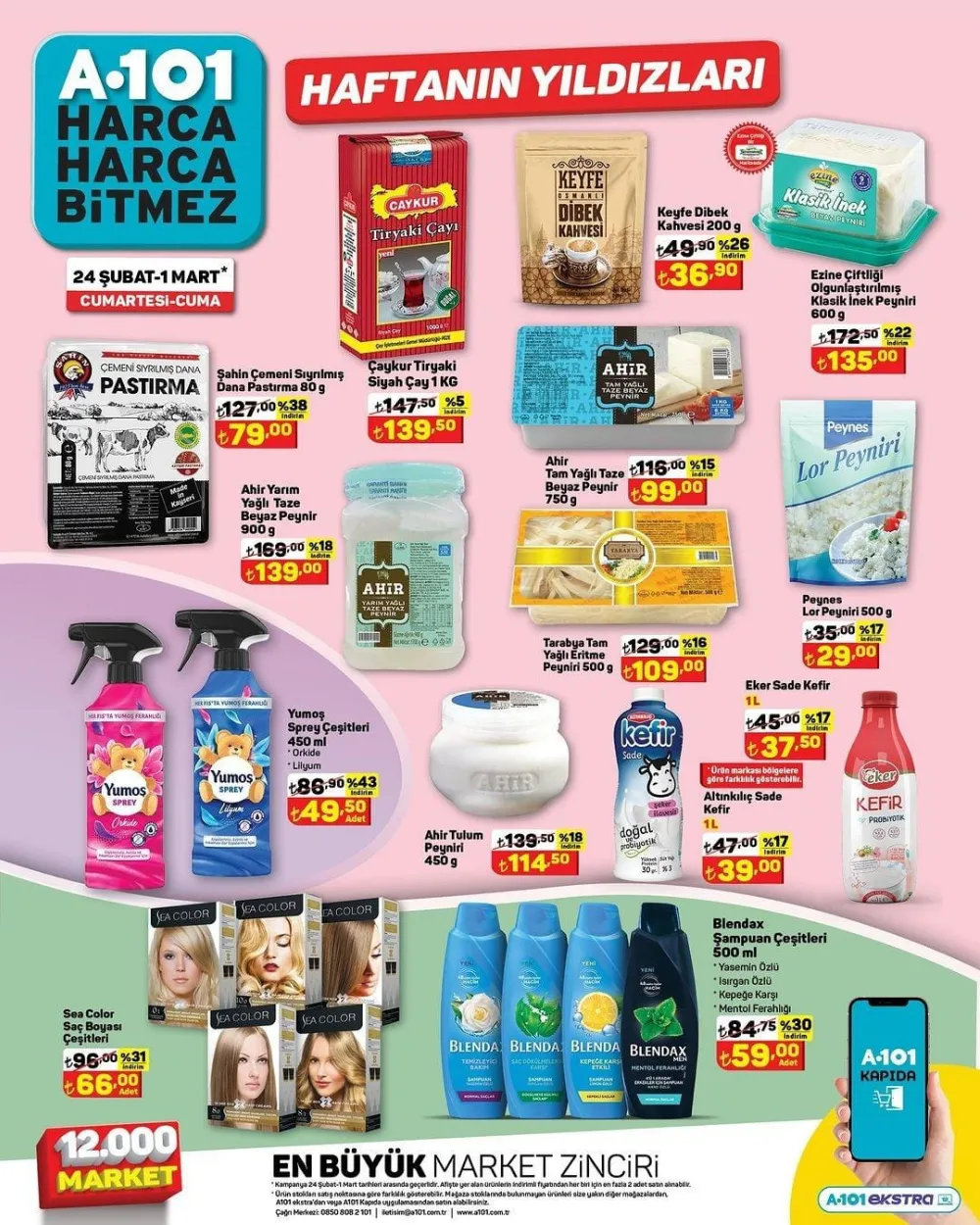 A101 market 24 Şubat 2024 aktüel ürünler kataloğunu yayımlandı. Yarın A101'de seçili birçok üründe indirim kampanyası sunuluyor. Ahir Yarım Yağlı Taze Beyaz Peynir 900 gr 139 TL, Yumoş Sprey Çeşitleri 450 ml 49,50 TL, Bingo Sıvı Deterjan Çeşitleri 2 Litre 66,90 TL'den satışa çıkacak.