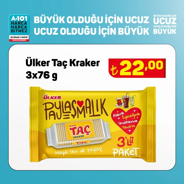3'lü Ülker Taç Kraker 22 Türk Lirası.