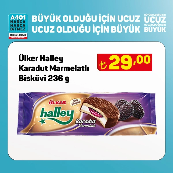 Ülker Halley Karadut Marmelatlı Bisküvi 29 Türk Lirası.