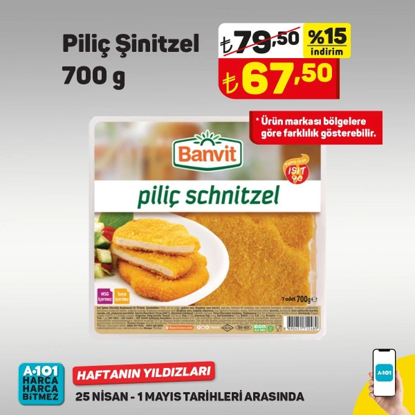 700 g Piliç Şinitzel 67.50 Türk Lirası.