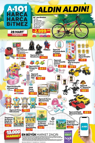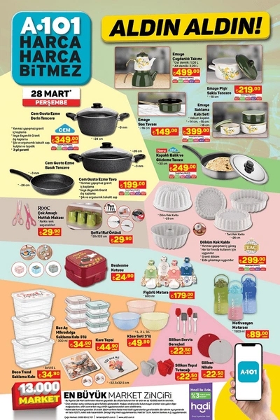 A101 28 Mart 2024 güncel aktüel ürünler kataloğunu internette paylaştı. Bu perşembe A101'de birbirinde seçili ürünlerde indirim fırsatları yerini aldı.