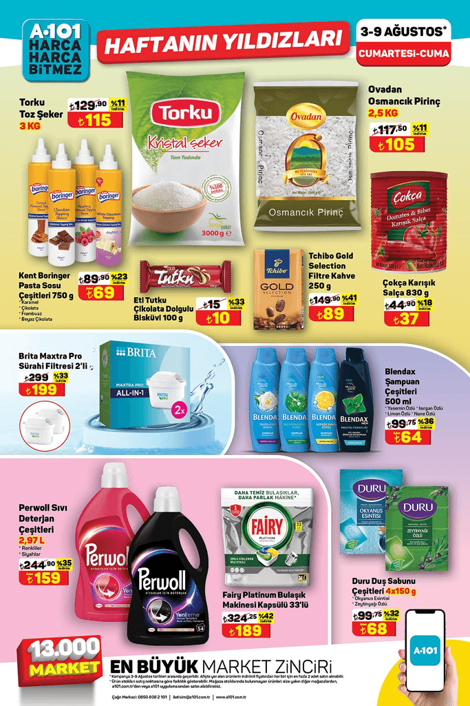 A101 3-9 Ağustos 2024 yepyeni Haftanın Yıldızları kataloğu! A101'de un, salça, toz deterjan, makarna, çay indirimde!