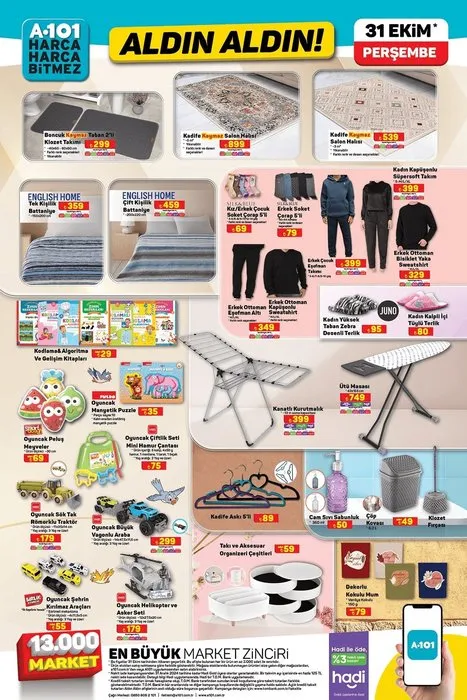 31 Ekim 2024 A101 aktüel kataloğunde birbirinden cazip ürünler sizleri bekliyor. Ekim ayının son aktüel kataloğunda fırsat ürünleri raflarda yerini alacak.