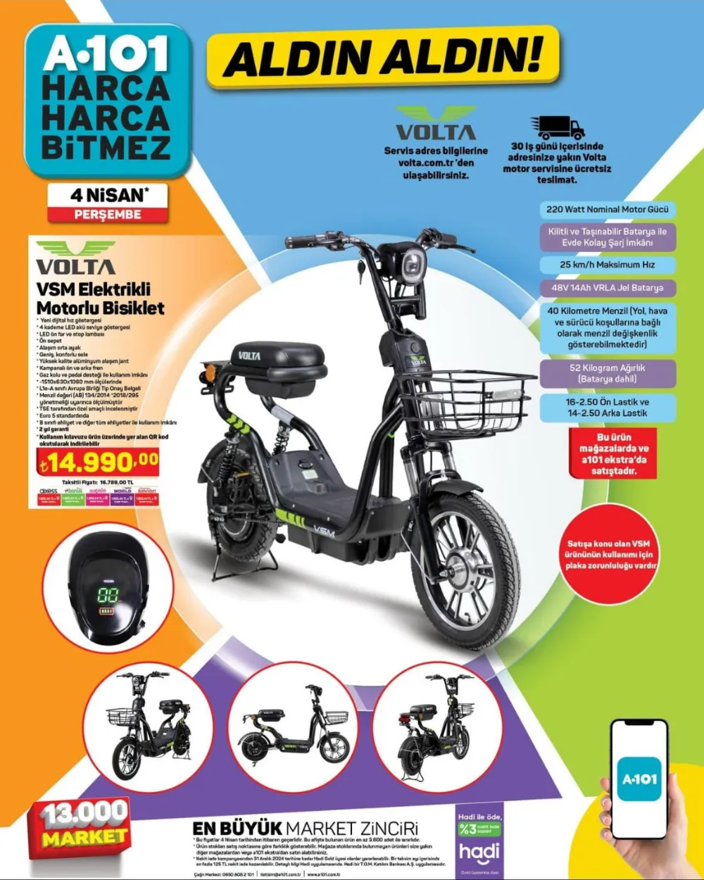 Volta Elektrikli Motorlu Bisiklet 14.990 Türk Lirası.