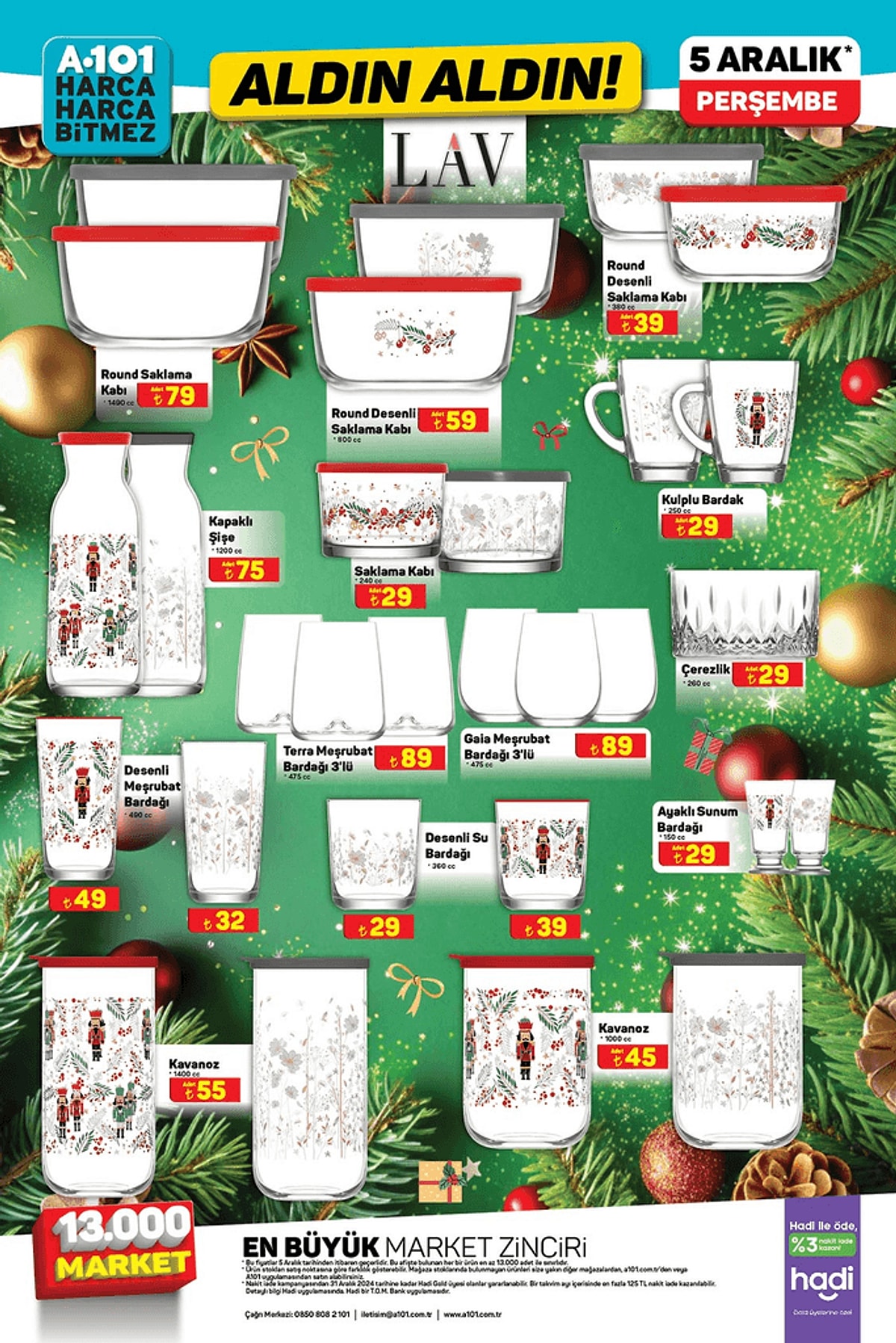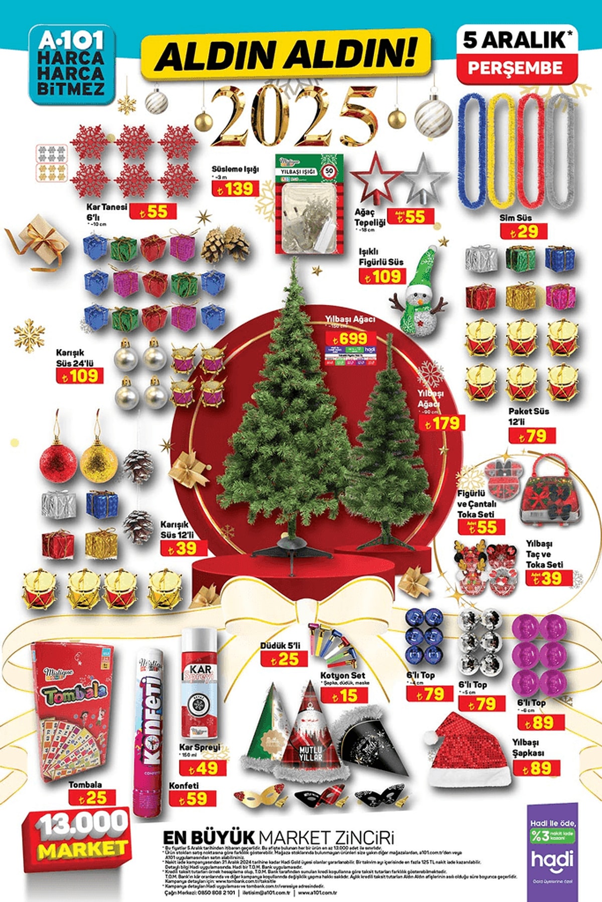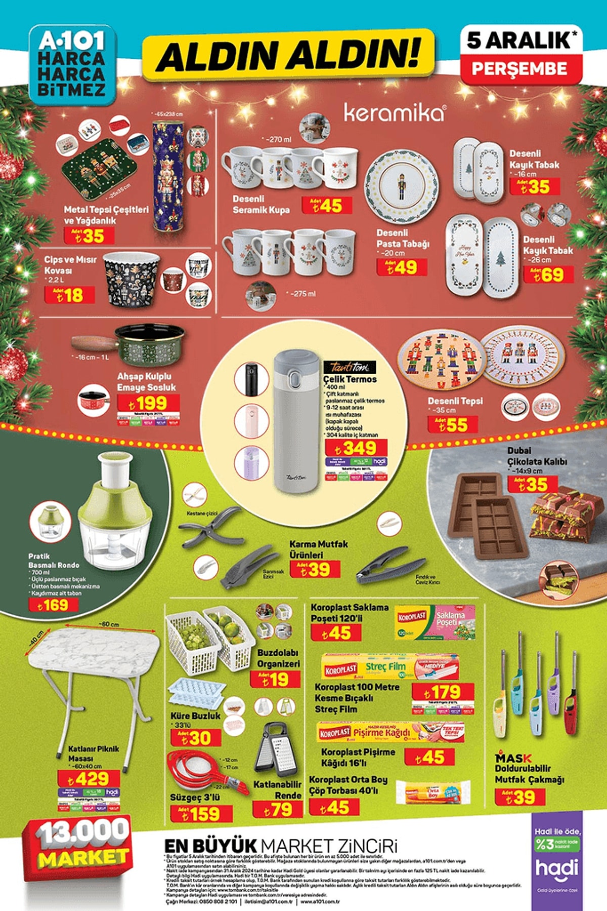 A101'ce 5 Aralık'ta birbirinden cazip ve indirinli ürünler raflarda yerini alacak. Katlanır Piknik Masası 429 TL,Karışık Yılbaşı Süsü 12'li 39 TL,