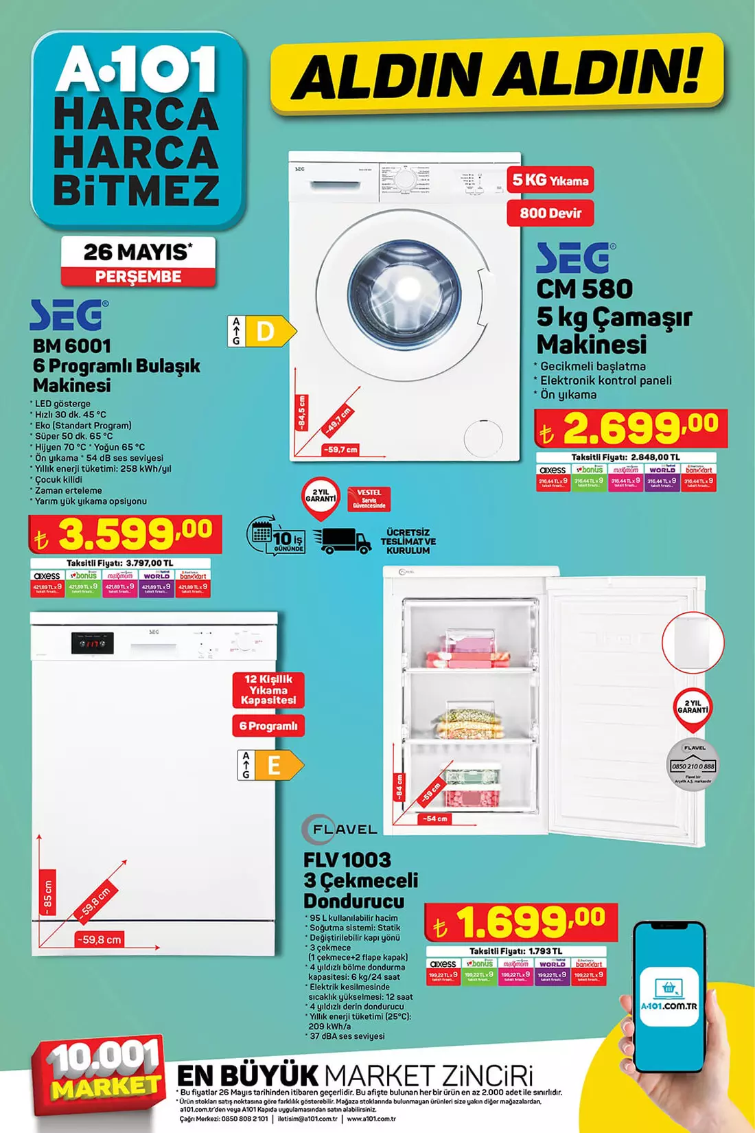 A101 26 Mayıs 2022 aktüel ürünler kataloğununun ürünleri belli oldu. Aktüel ürünler kataloğunda yer alan beyaz eşya setinin fiyat listesini derledik. İşte 26 Mayıs 2022 fiyat listesi...