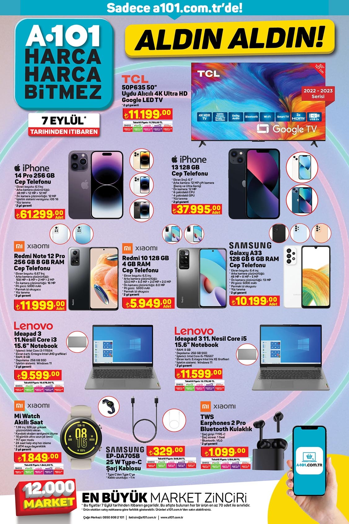 Her hafta tüketicisini getirdiği ürünlerle heyecanlandıran A101 yeni kataloğunu yayımladı. 7 Eylül 2023 A101 İnternete Özel Aldın Aldın kataloğunda yer alan ürünlerden en dikkat çekicisi ise 256 GB iPhone 14 Pro oldu.