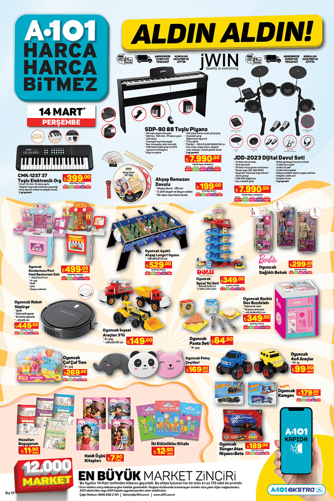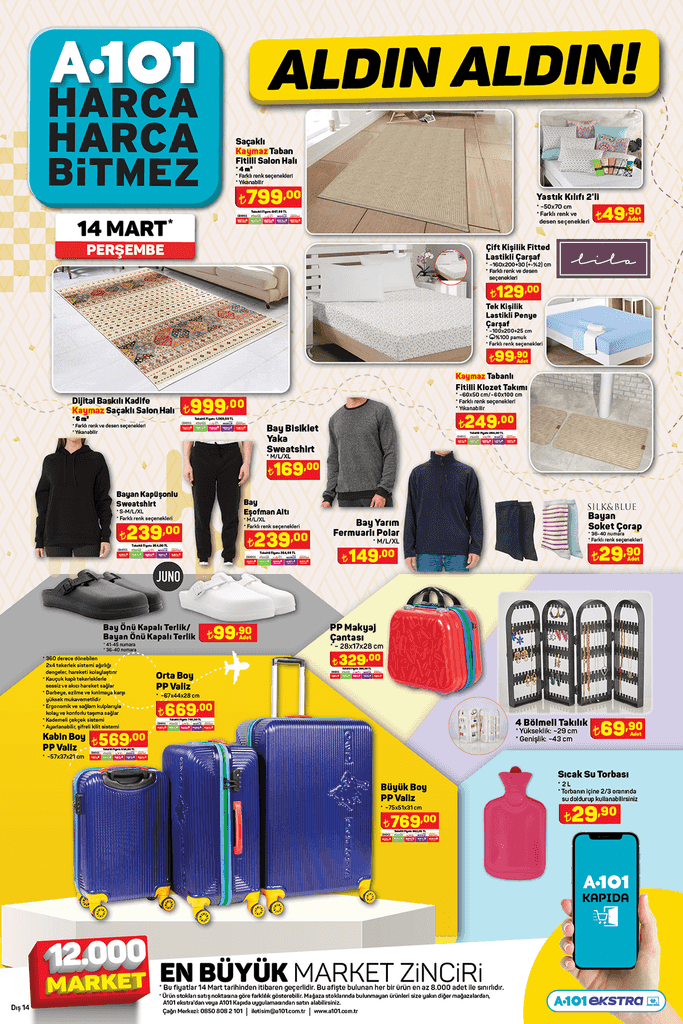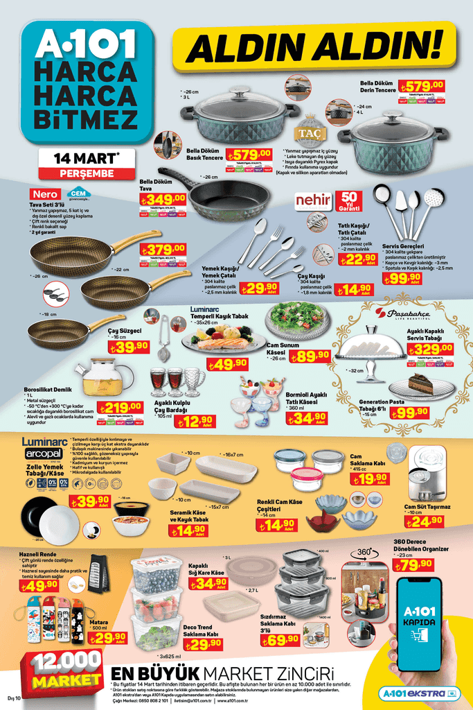 A101 14 Mart ile 21 Mart 2024 tarihleri arasında geçerli olacak aktüel kampanya kataloğunu duyurdu. 14 Mart 2024 Perşembe gününden itibaren A101 Marketlerde 'Aldın Aldın' etiketi ile satışa sunulacak ürünlerde büyük fırsatlar sunuluyor, duyan ekin edecek. İşte A101 14-21 Mart 2024 Aktüel Kataloğu..