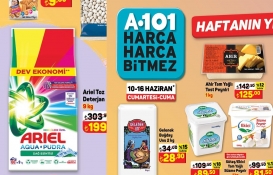 A101'de 9 kg Ariel toz deterjan 303 TL'den 199 TL'ye, 1 kg tost peyniri 142 TL'den 125 TL'ye düştü!