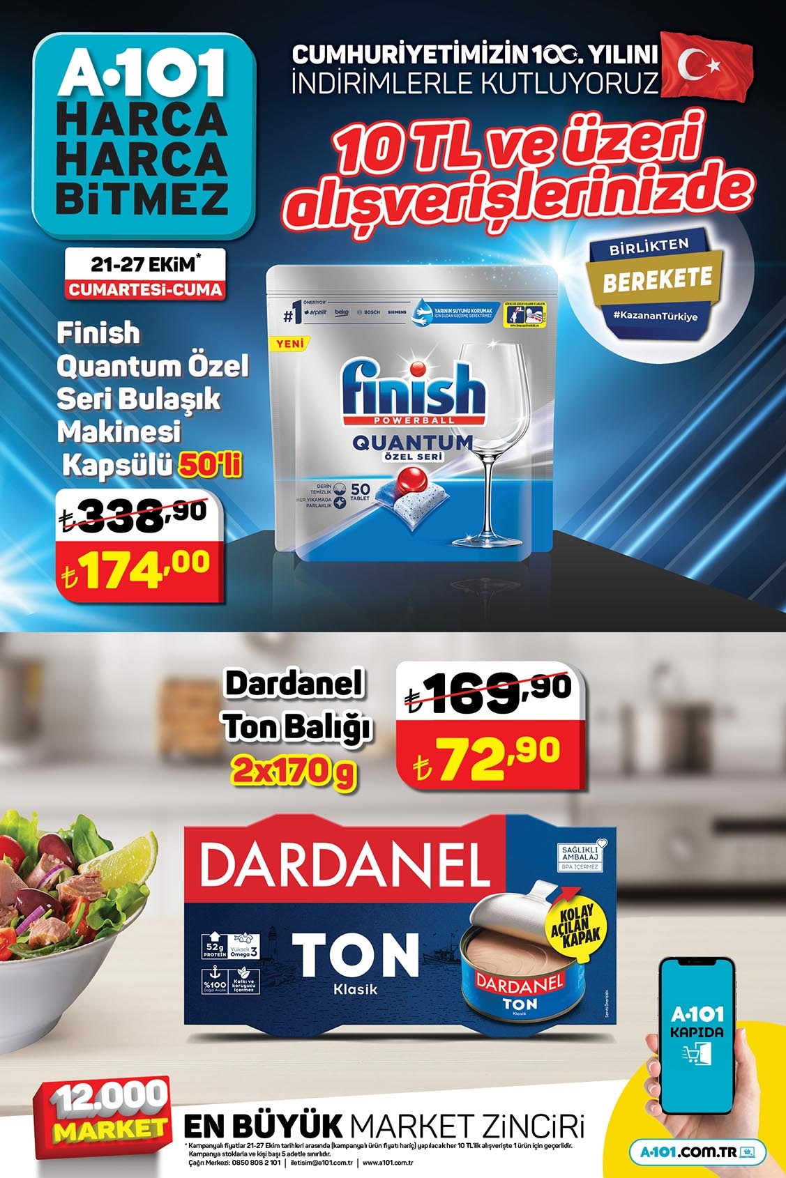 A101'in indirimli aktüel ürünler kataloğu yayımlandı. Her hafta A101 tarafından paylaşılan aktüel ürünler milyonlarca tüketici tarafından takip ediliyor. Bu hafta A101'de Persil Toz Deterjan, Ovadan Baldo Pirinç, Orkide Ayçiçek Yağı ve Ekici Kaşar Peyniri indirimli fiyatıyla satışa çıkarılacak. Öte yandan A101'de 10 lira üstü alışverişlerde 2x170 gram Dardanel Ton Balığı 169,90 lira yerine 72,90 liraya ve 50'li Finish Quantum Özel Seri Bulaşık Makinesi Kapsülü ise 338,90 TL yerine 174 liraya raflarda yer alacak. Peki, A101'de diğer aktüel ürünlerin fiyatı ne kadar, kaç TL? İşte A101 indirimli aktüel ürünler kataloğu fiyat listesi...