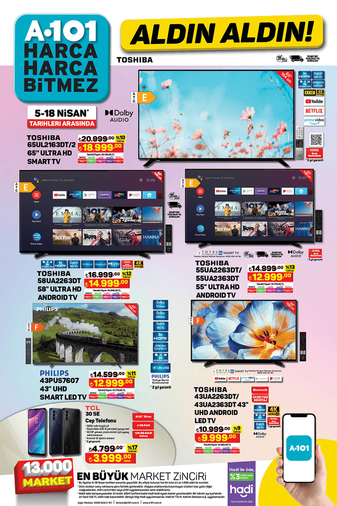 Bayram fırsatı kapsamında pek çok üründe indirim yapan A101 merakla beklenen 11 Nisan 2024 tarihli aktüel kataloğunu da paylaştı. A101’de bu hafta Android TV’den çay makinesine kadar pek çok üründe indirim yapıldı. Peki bu hafta A101’de hangi ürünler ne kadar? İşte merakla beklenen 11 Nisan 2024 kataloğu...