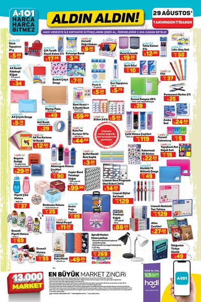 A101'de okul ve kırtasiye ürünlerinde büyük indirim! A101'de 5 Eyül'e kadar kırtasiye ve okul ürünlerinde indirim...