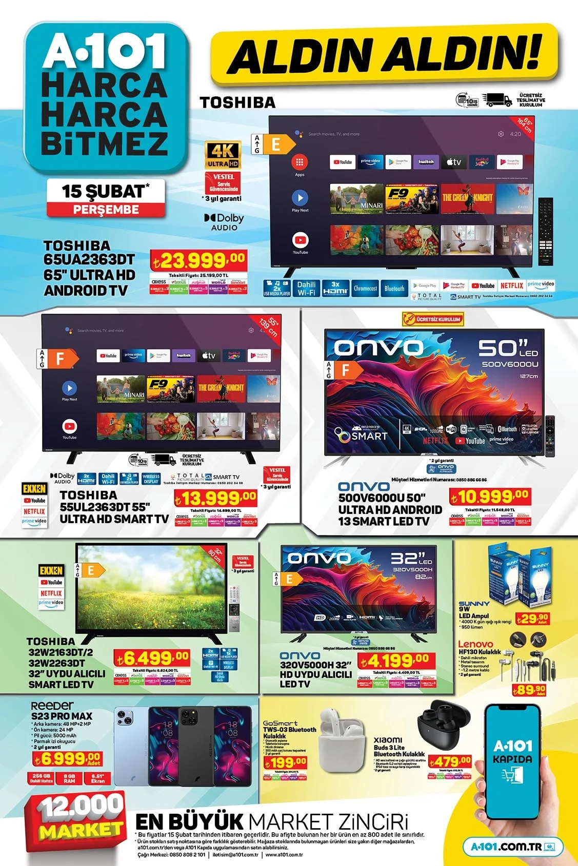 A101'de Toshiba 65 Ultra HD Android Tv 23.999 TL ve SEG No-Frost Buzdolabı 15.999 TL! 15-22 Şubat 2024 A101 kataloğu!